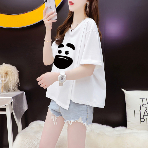 RM12774#不规则短袖T恤女宽松大码夏季短款上衣