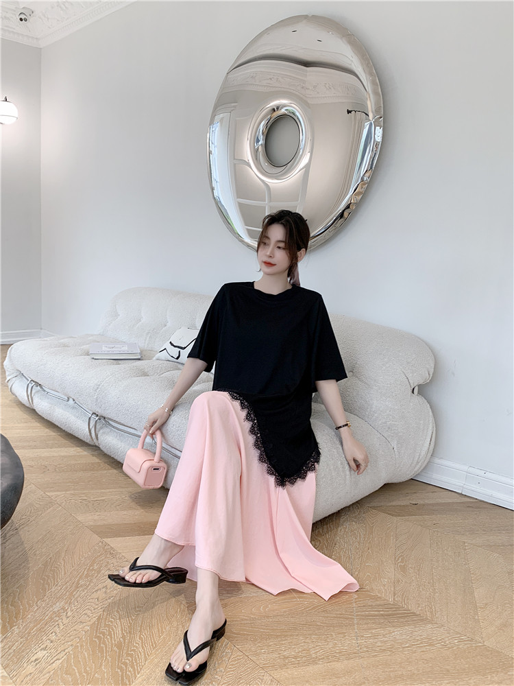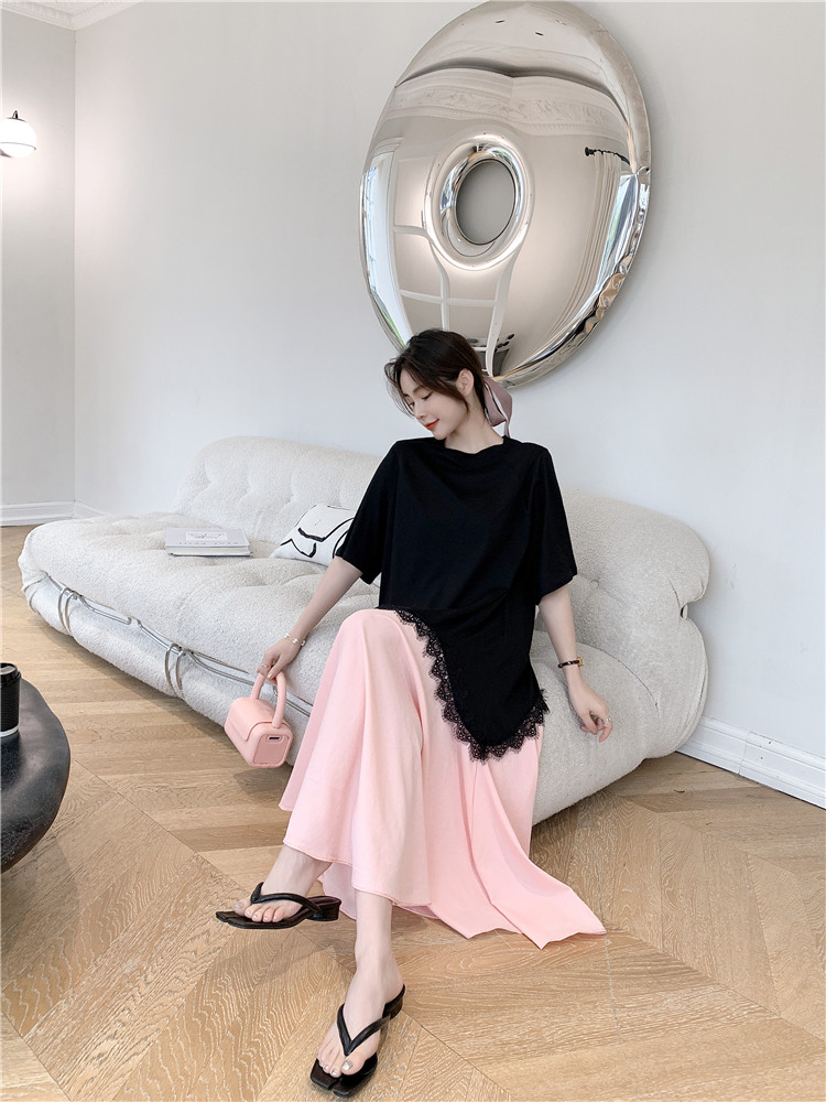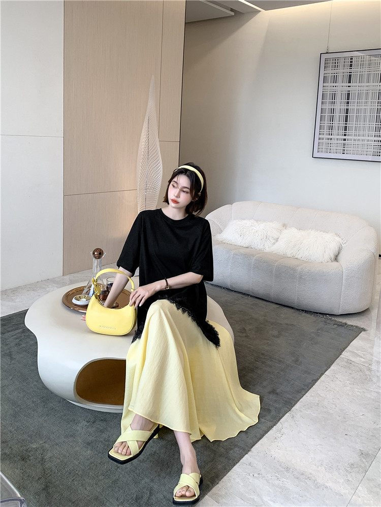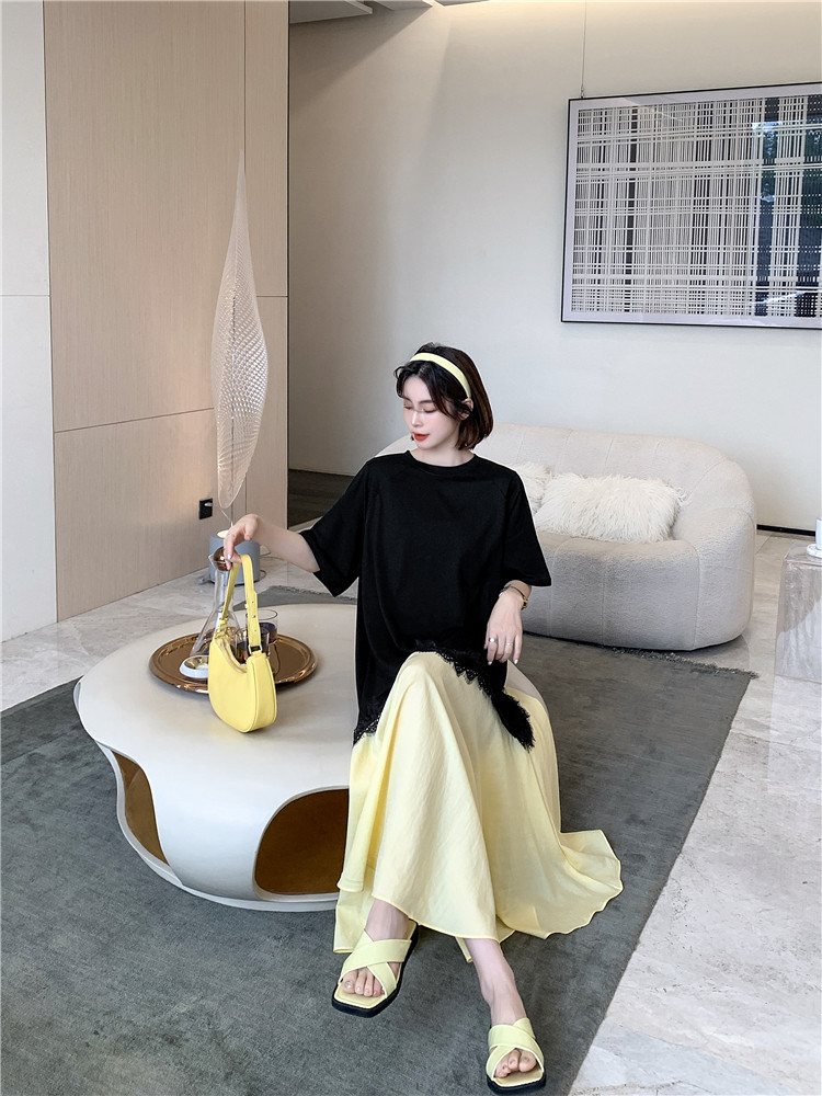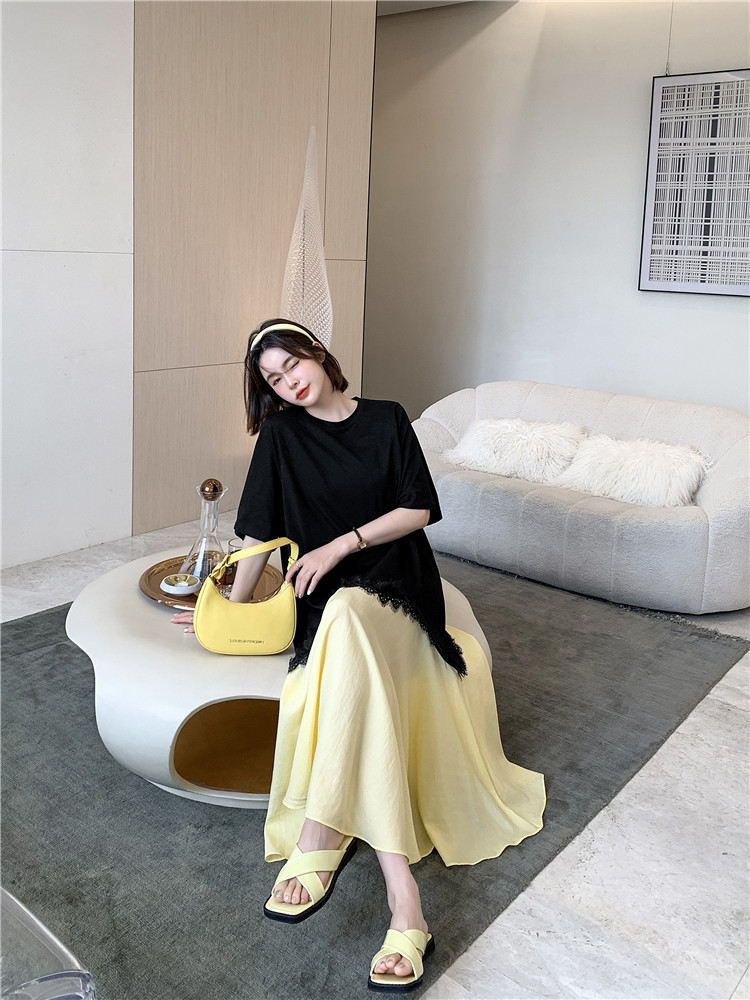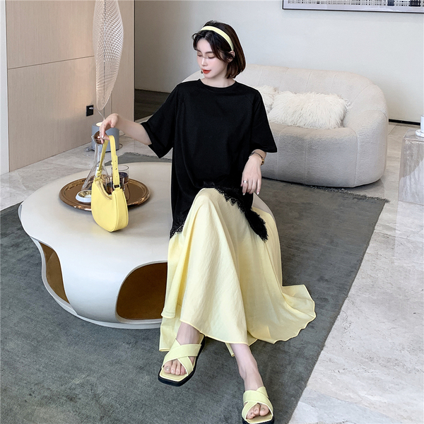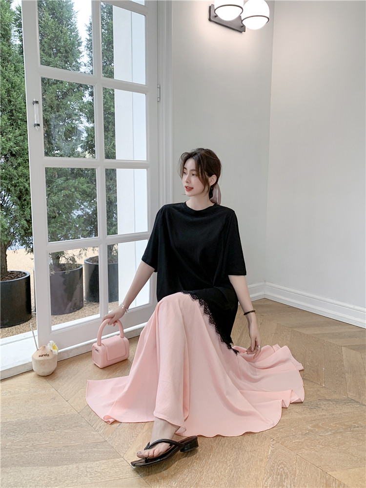 RM12910#夏新款/大码宽松长款宽松蕾丝鱼尾假两件拼接连衣裙