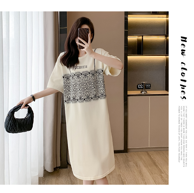 RM12966#款夏季宽松拼接蕾丝简约圆领休闲套头宽松型针织连衣裙