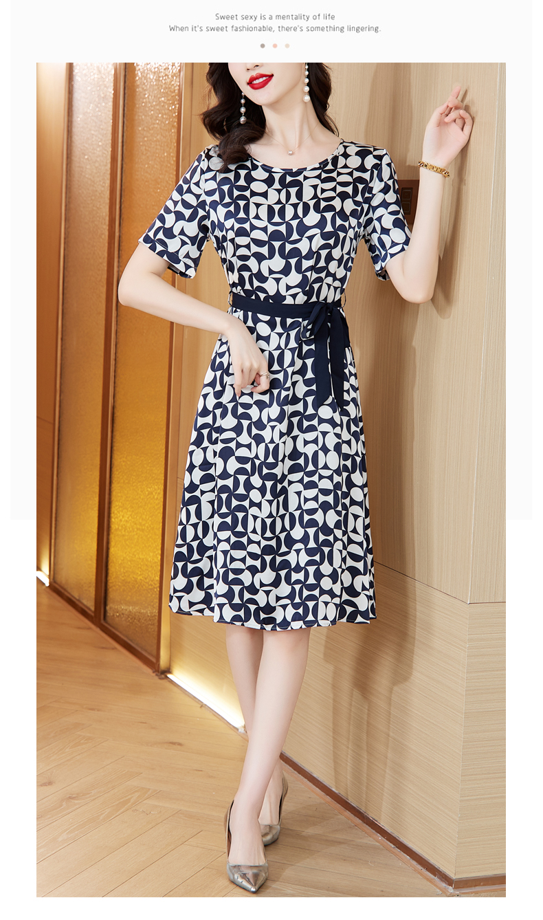 RM13052#仿真丝连衣裙2023新款气质高级感收腰腰带显瘦桑蚕丝