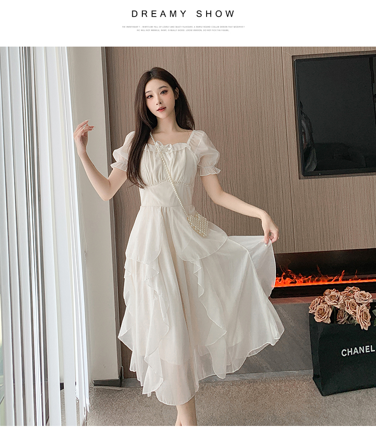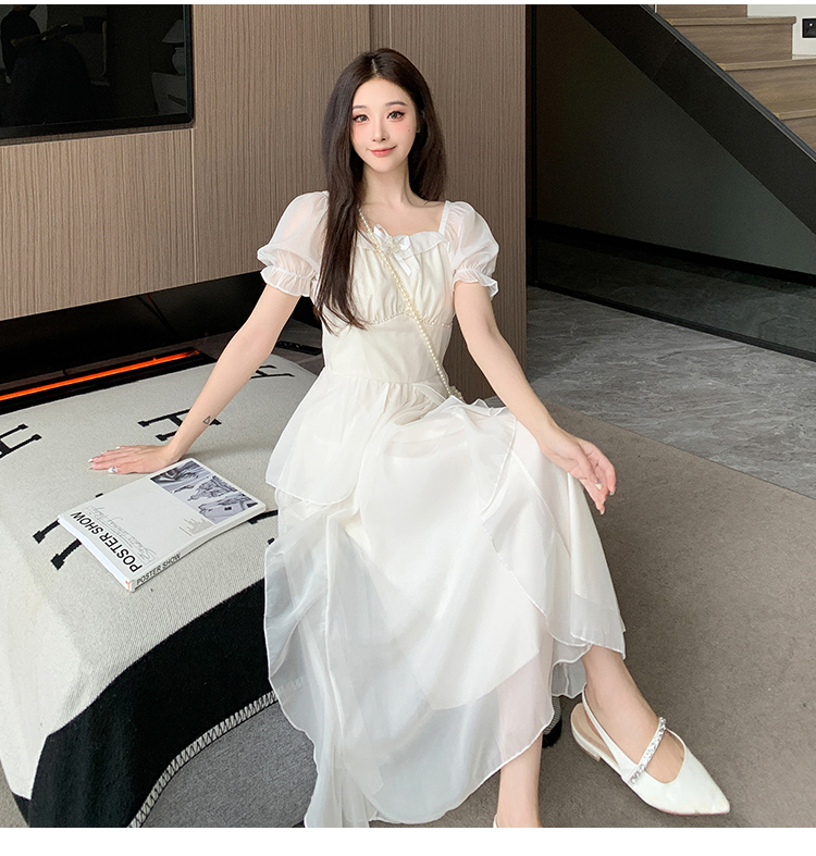 RM13095#高腰长裙仙气显瘦短袖大码连衣裙女2023年夏季新款