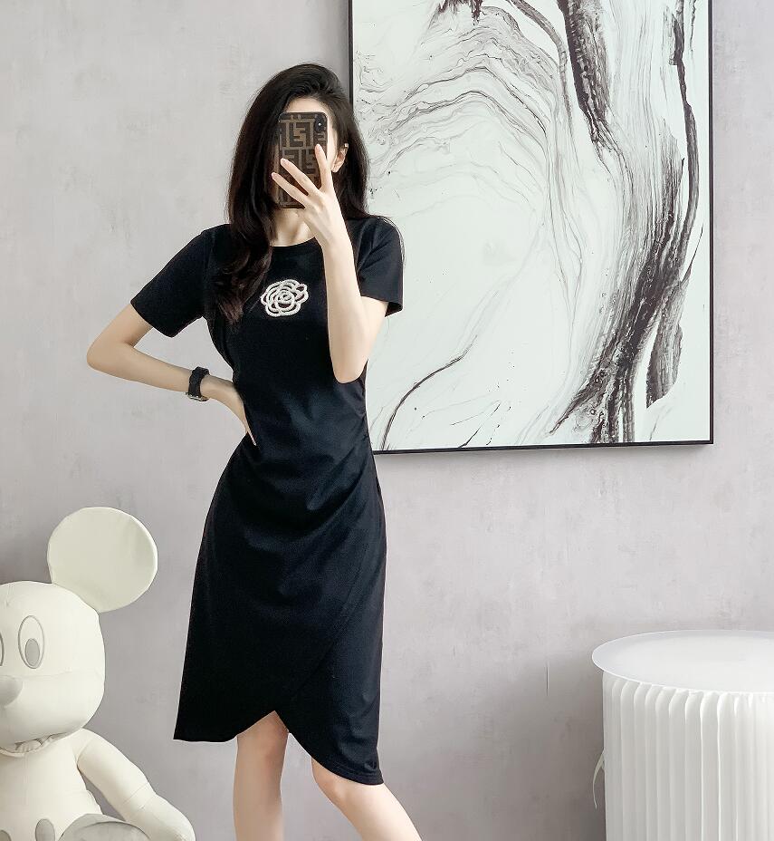 RM13731#轻熟风小众山茶花连衣裙女夏季2023新款法式复古收腰A字裙