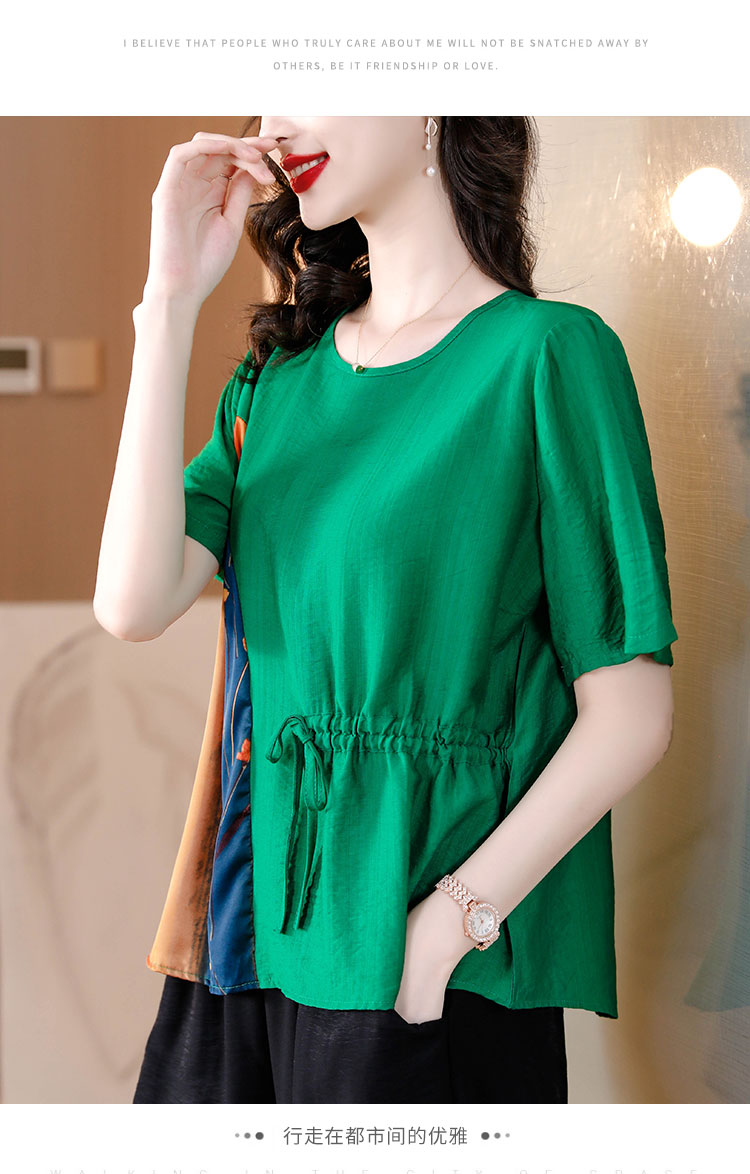 RM13745#亚麻棉妈妈洋气宽松遮肚短袖女夏季2023新款气质高档小衫夏装上衣