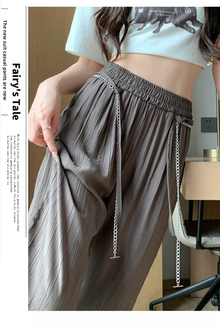 RM13911#冰丝压皱阔腿裤季2023夏季链条高腰垂坠感宽松窄版直筒拖地裤