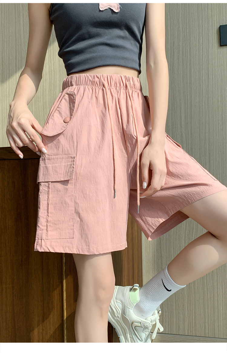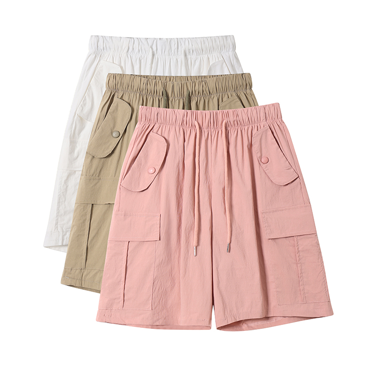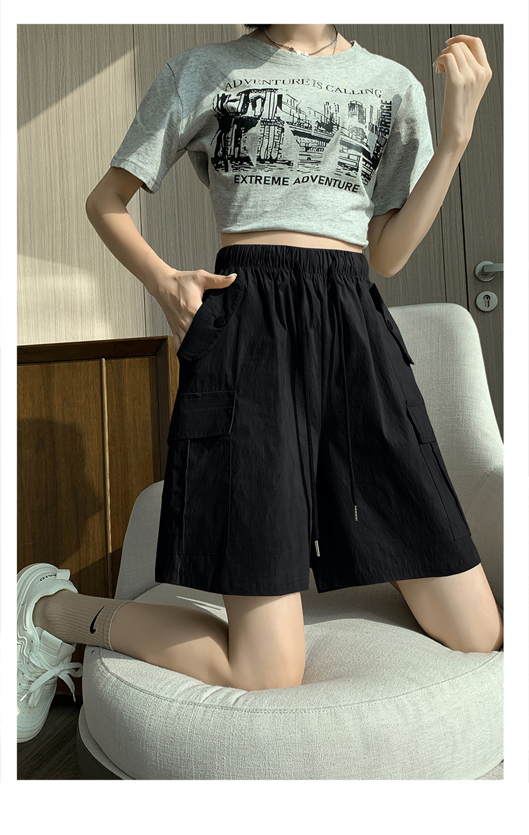 RM13914#工装短裤女夏季设计感松紧腰口袋阔腿裤小个子显瘦休闲五分裤