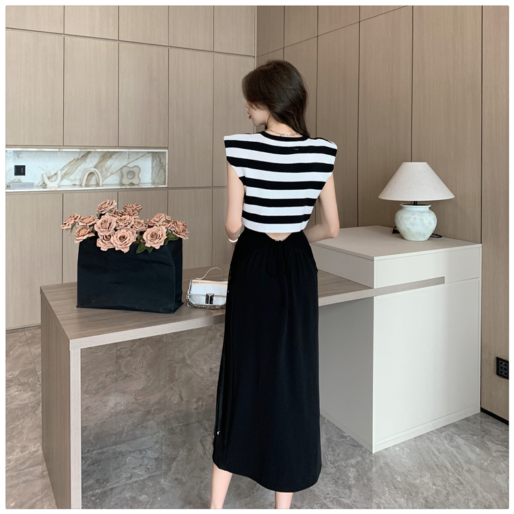 RM14003#韩系网红设计感时尚套装女夏季漏背无袖上衣拉链开叉半身裙两件套