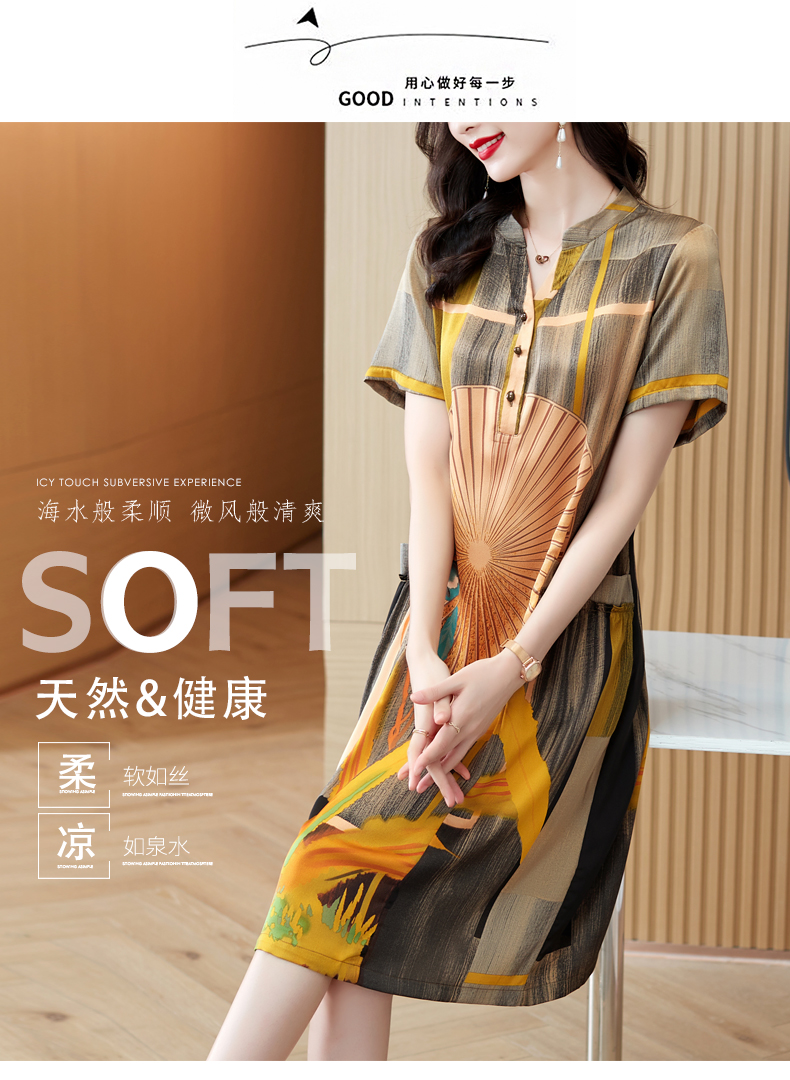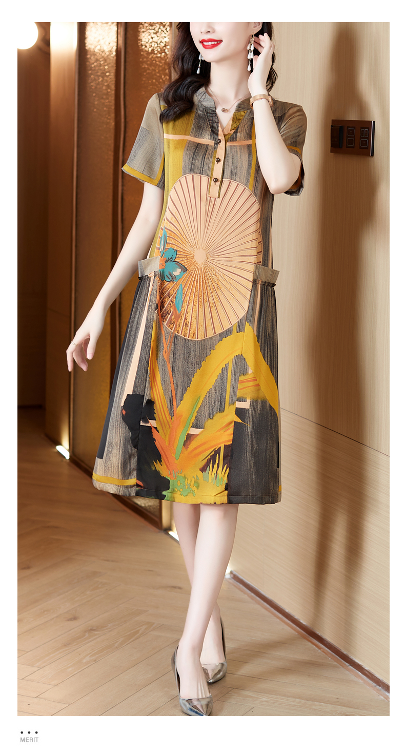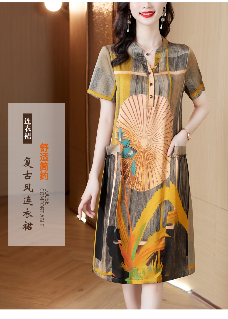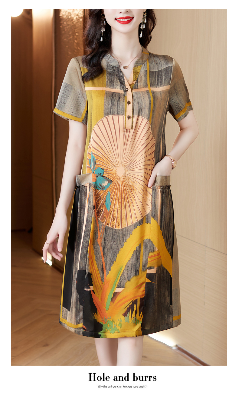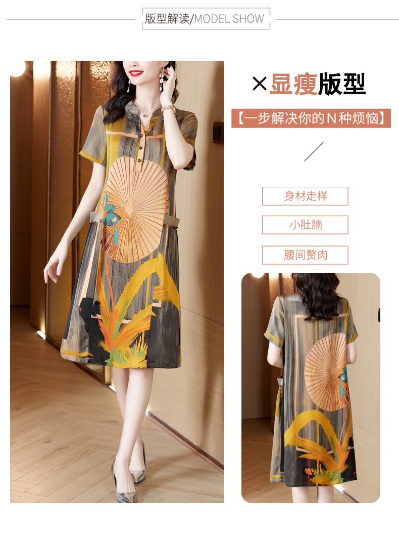 RM14064#夏装新款直筒裙加肥加大胖妈妈洋气遮肉印花连衣裙