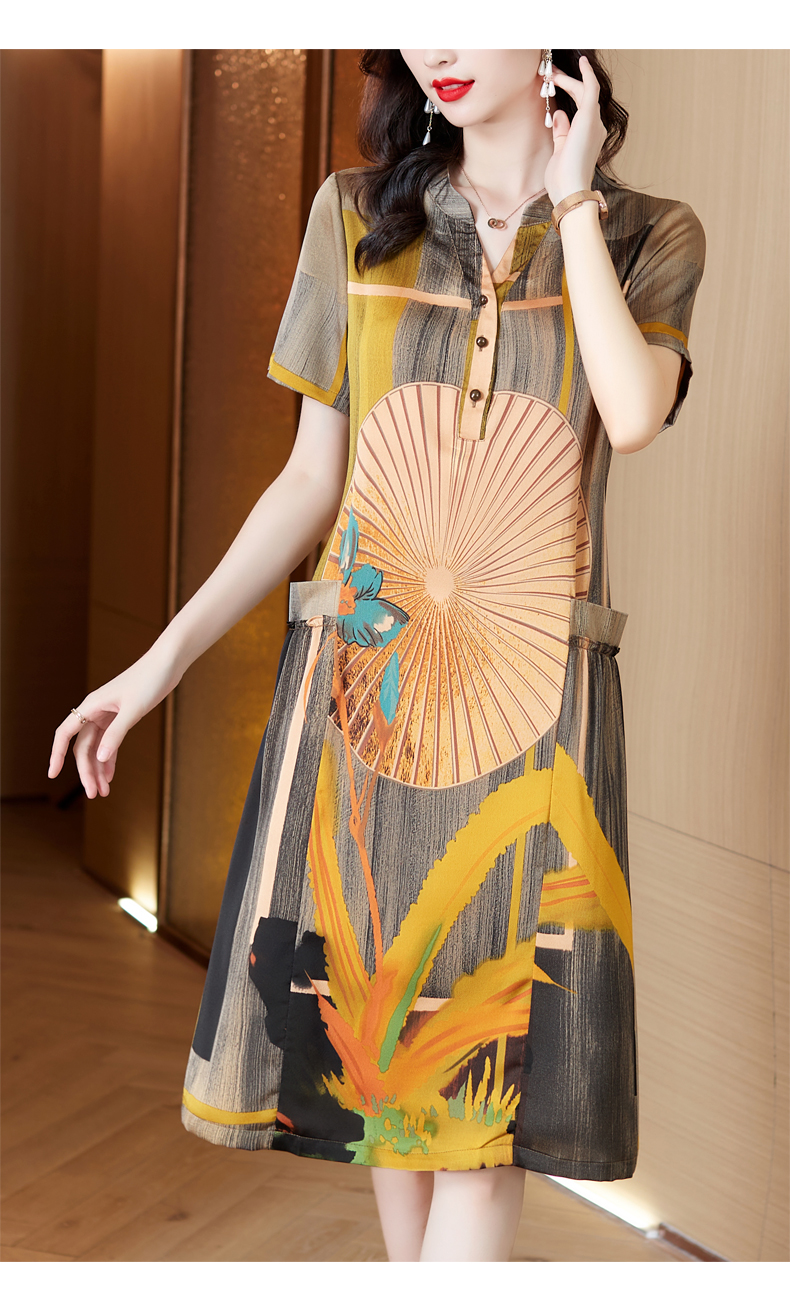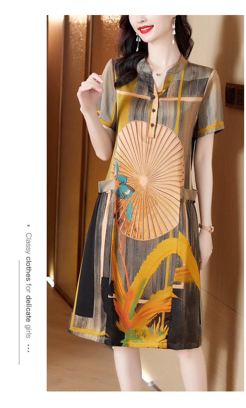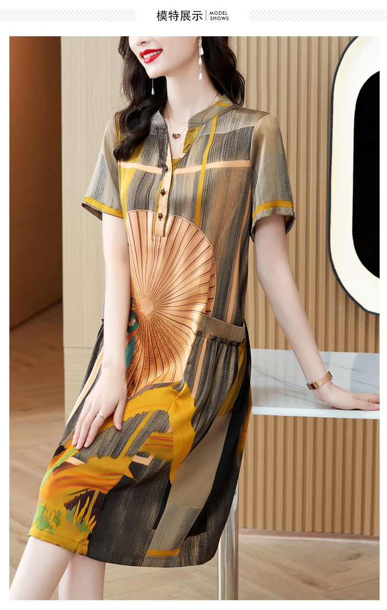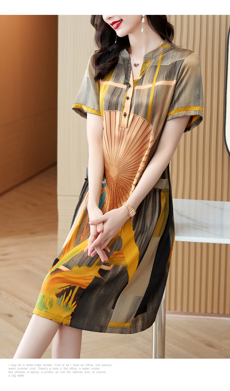 RM14064#夏装新款直筒裙加肥加大胖妈妈洋气遮肉印花连衣裙
