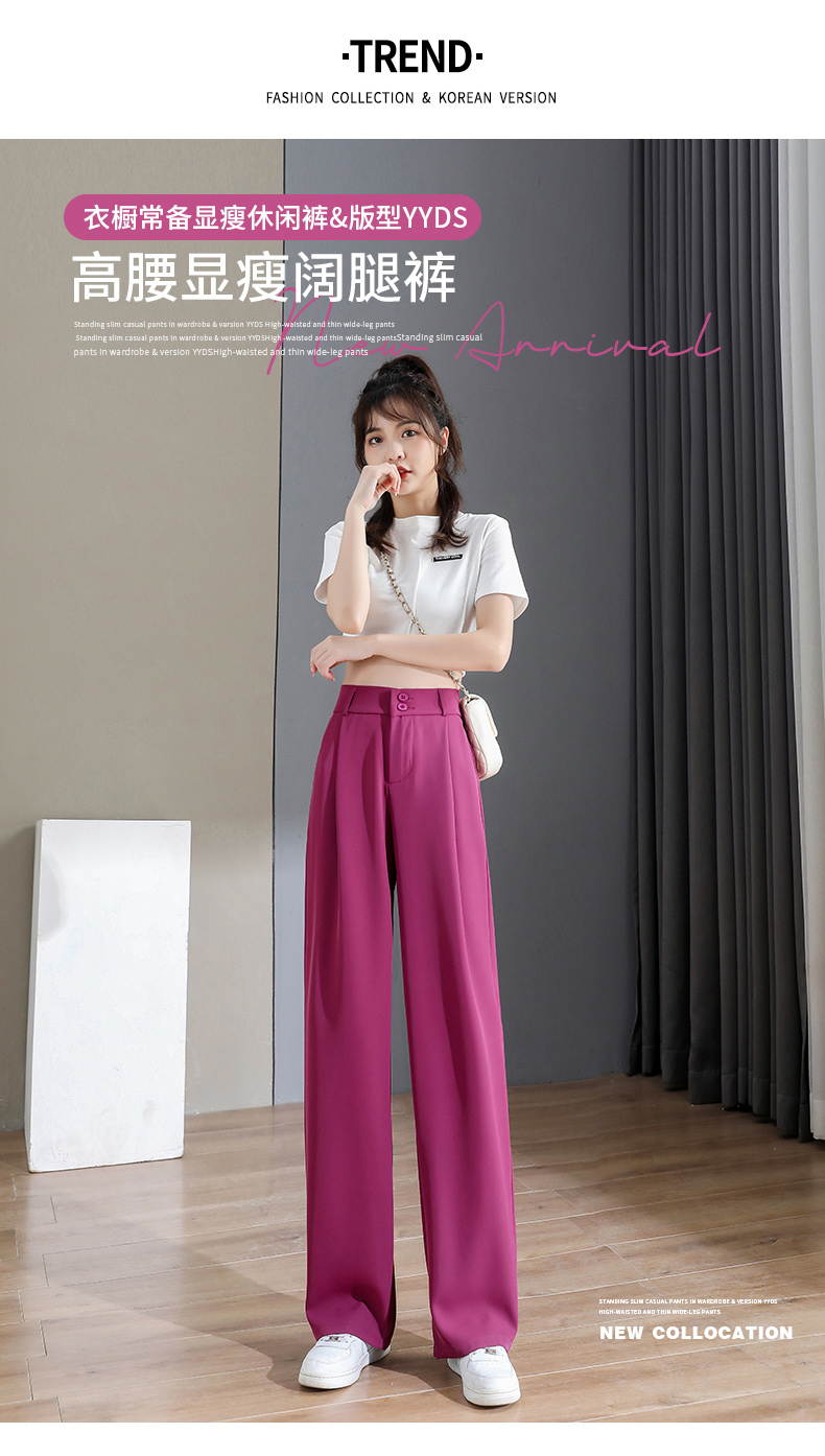 RM13963#火龙果色西装裤子女夏季薄款2022年新款爆款高腰小个子阔腿裤垂感