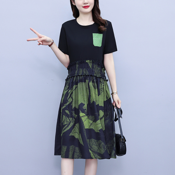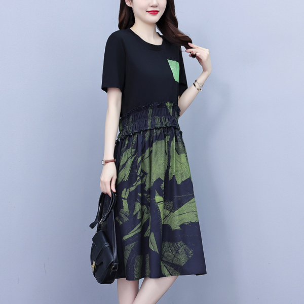 RM14061#大码女装2023夏装胖mm显瘦遮肚子洋气减龄拼接设计感连衣裙女
