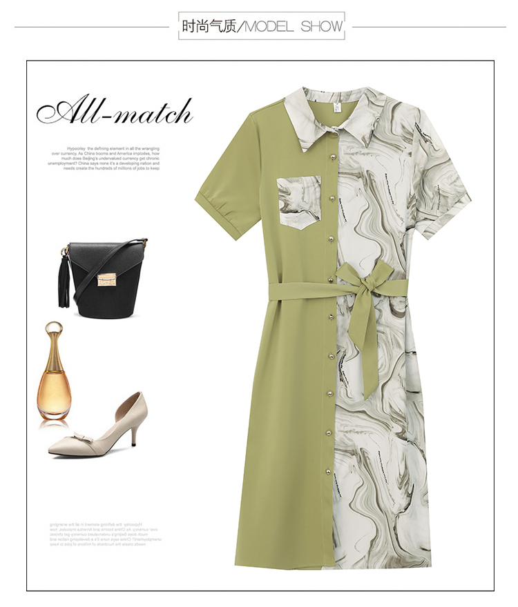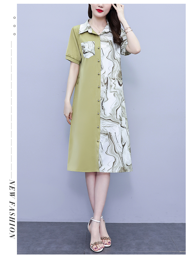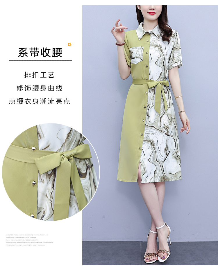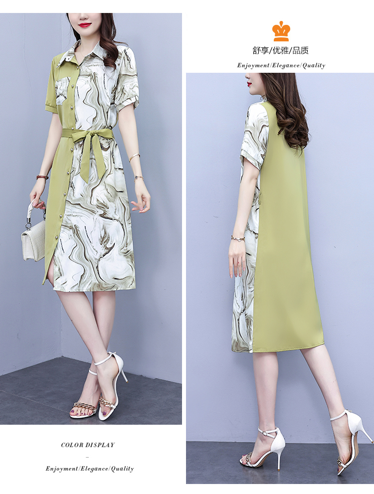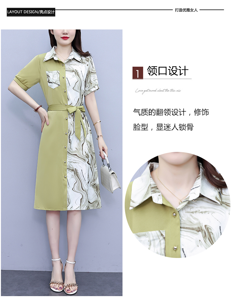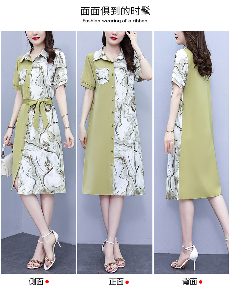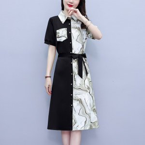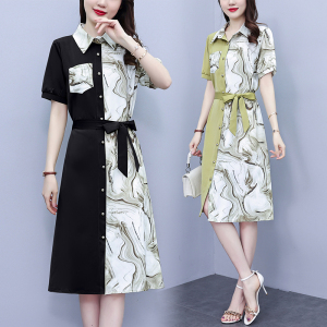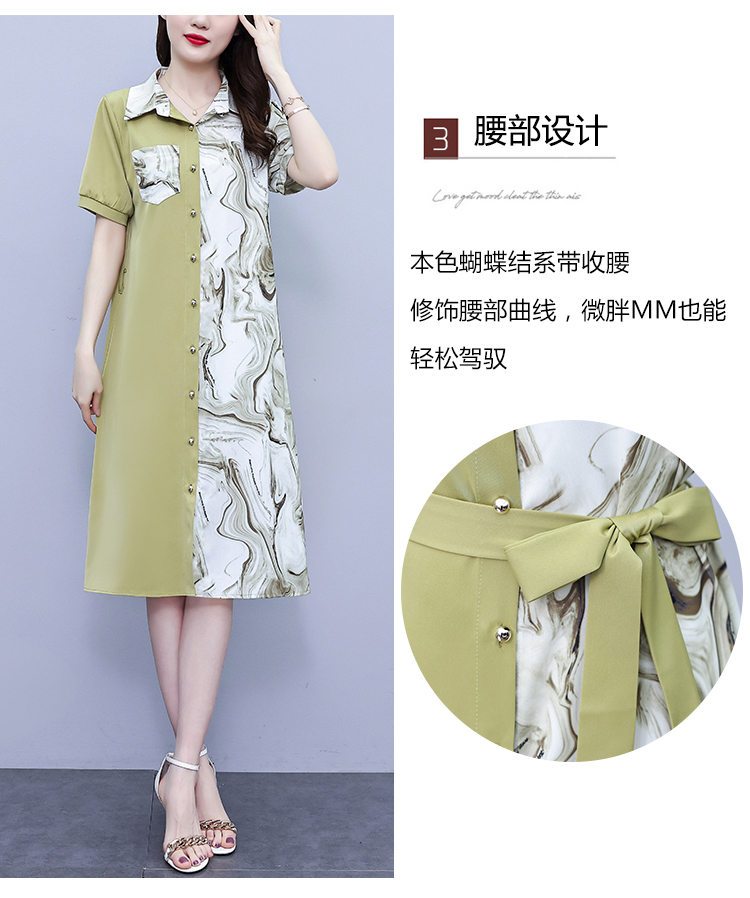 RM14063#大码女装2023夏季新款拼接撞色印花精致简约气质收腰衬衫连衣裙