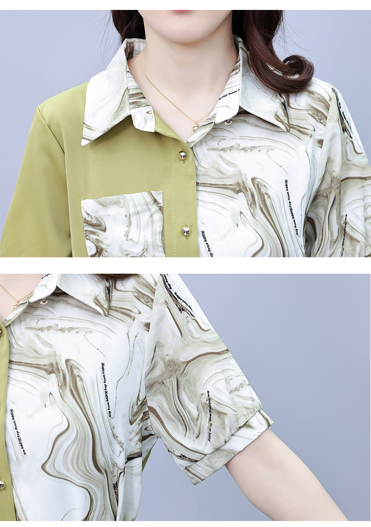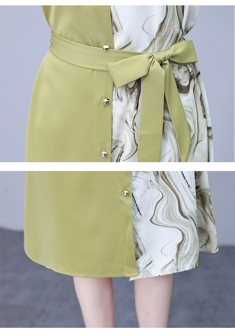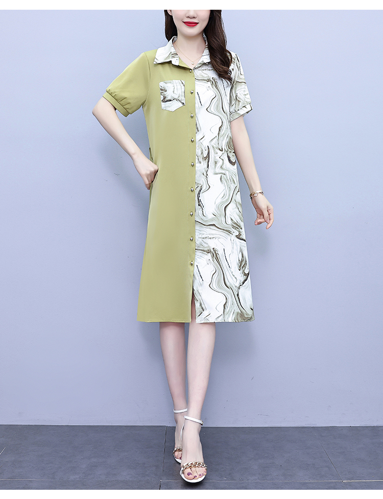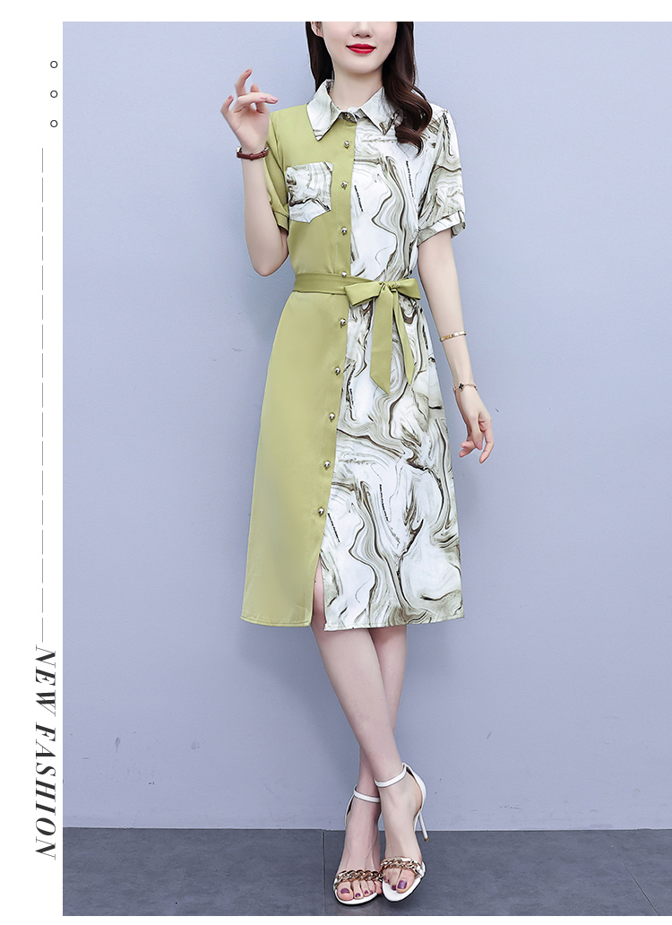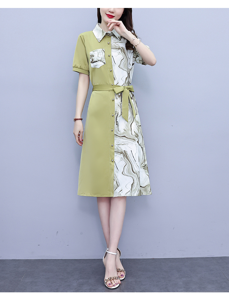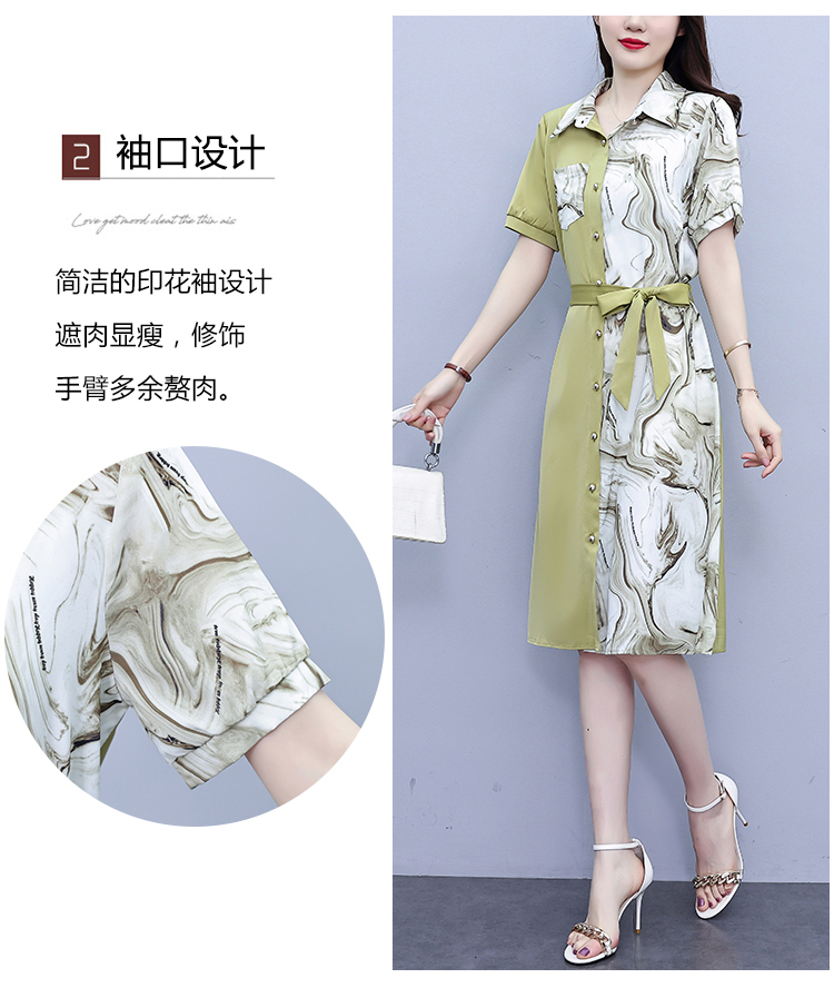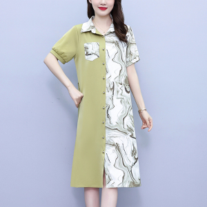RM14063#大码女装2023夏季新款拼接撞色印花精致简约气质收腰衬衫连衣裙