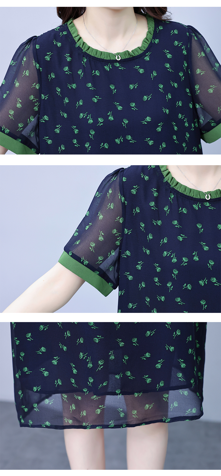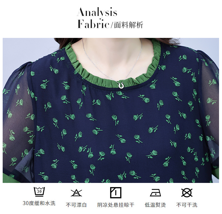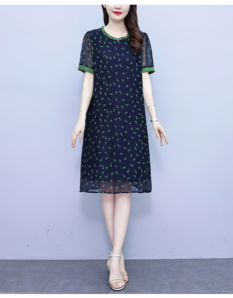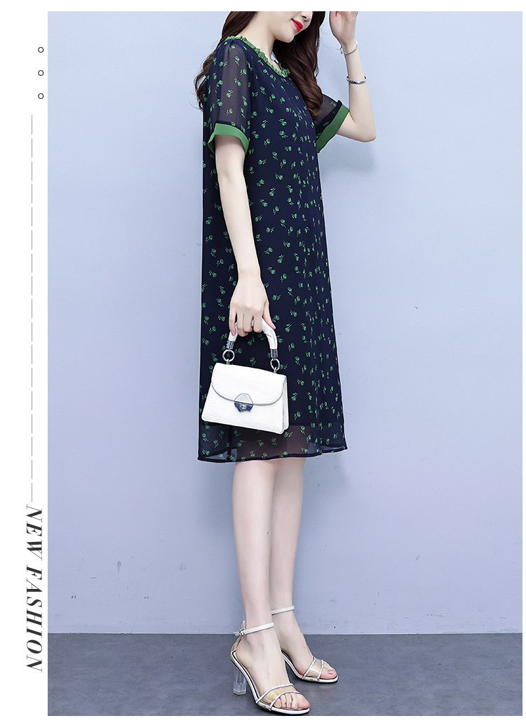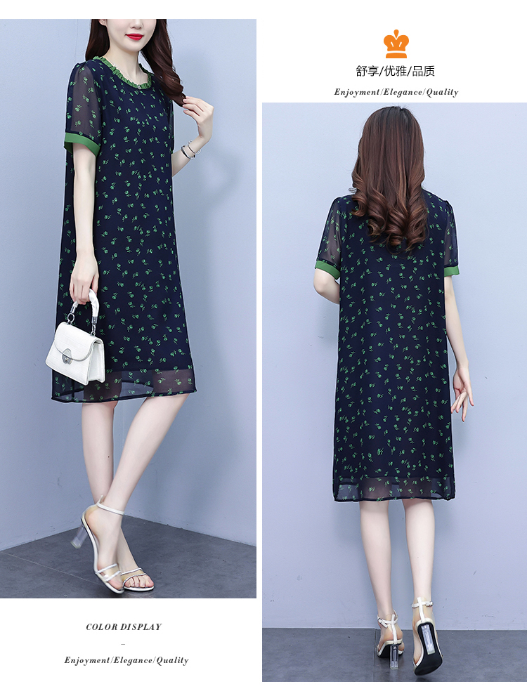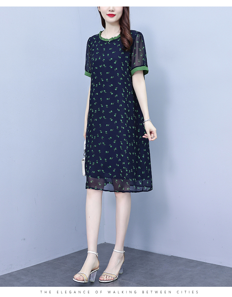 RM14075#大码女装2023夏季新款时尚遮肉显瘦气质圆领雪纺中长款连衣裙