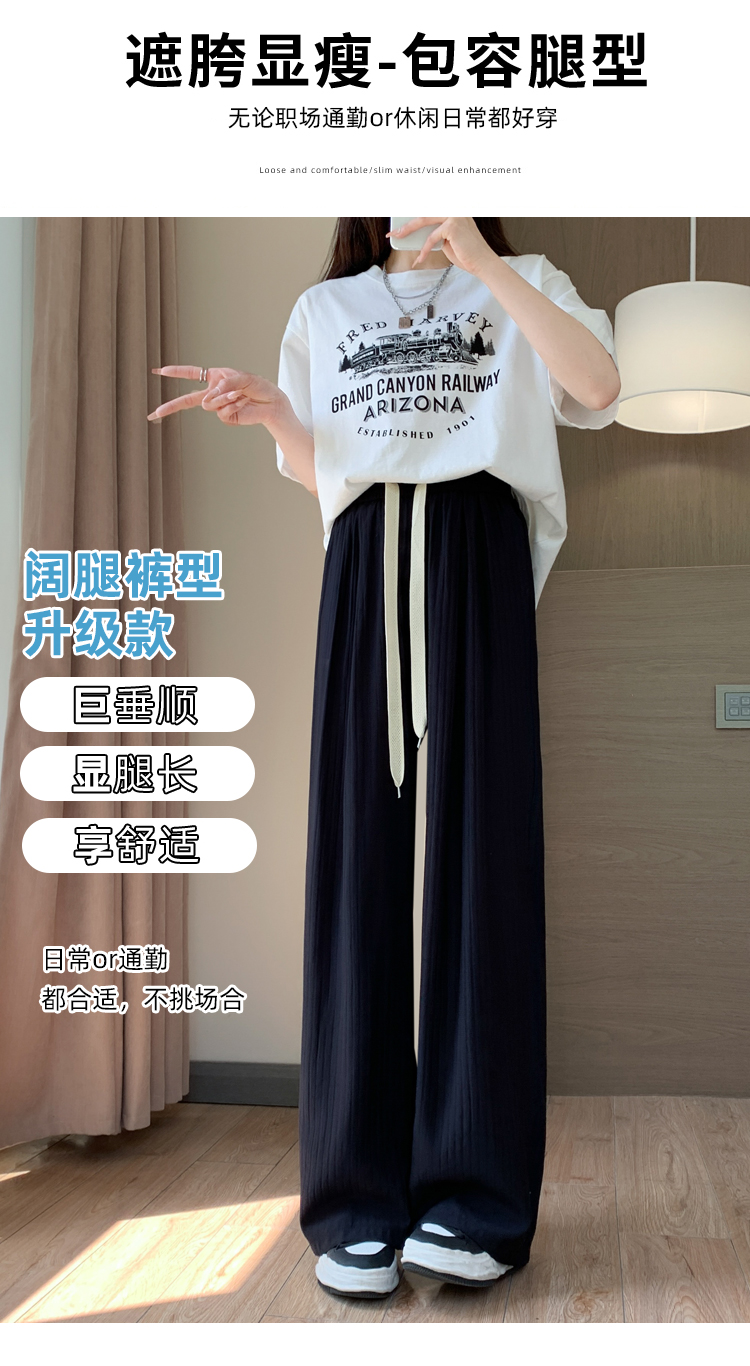 MY5152# 高品质米色褶皱肌理感阔腿裤女春夏新款设计感高腰宽松垂感休闲...