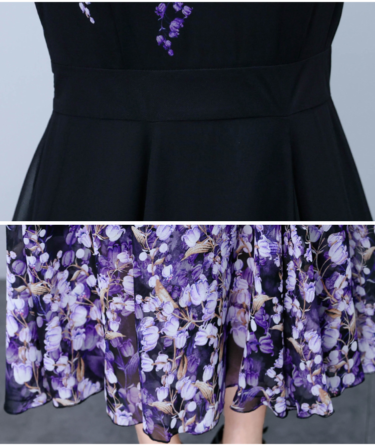 RM14336#夏季新款定位印花连衣裙女圆领收腰气质中长裙子