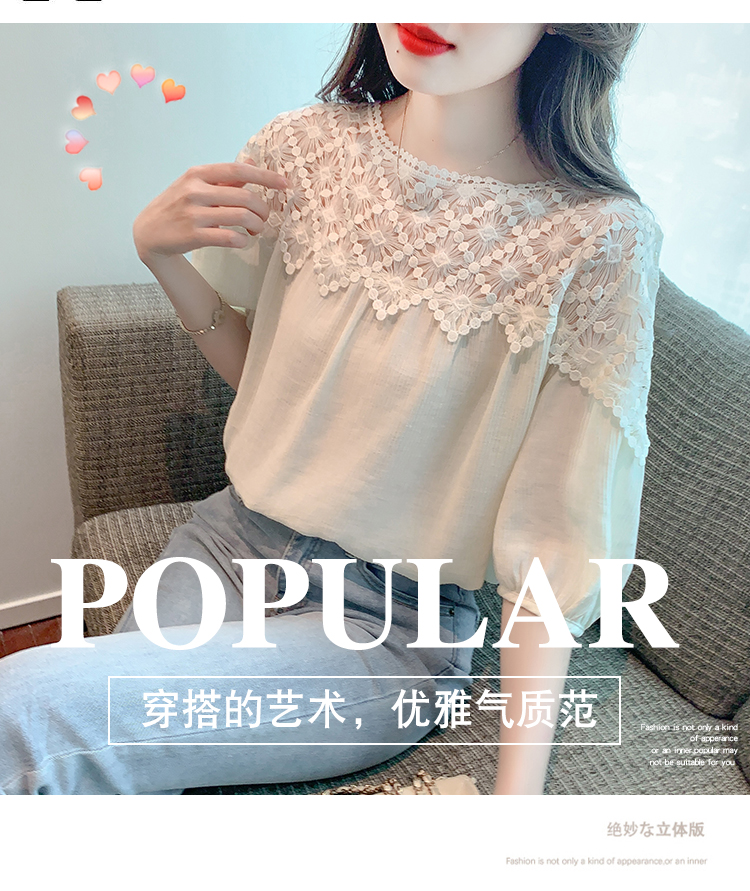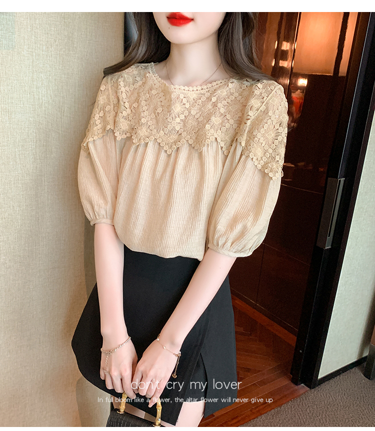 RM14356#夏季新款蕾丝衫/雪纺衫田园淑女宽松型H型七分袖