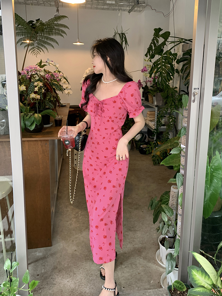 RM14361#大码女装梅子味的夏天碎花长款连衣裙女胖MM收腰显瘦长裙