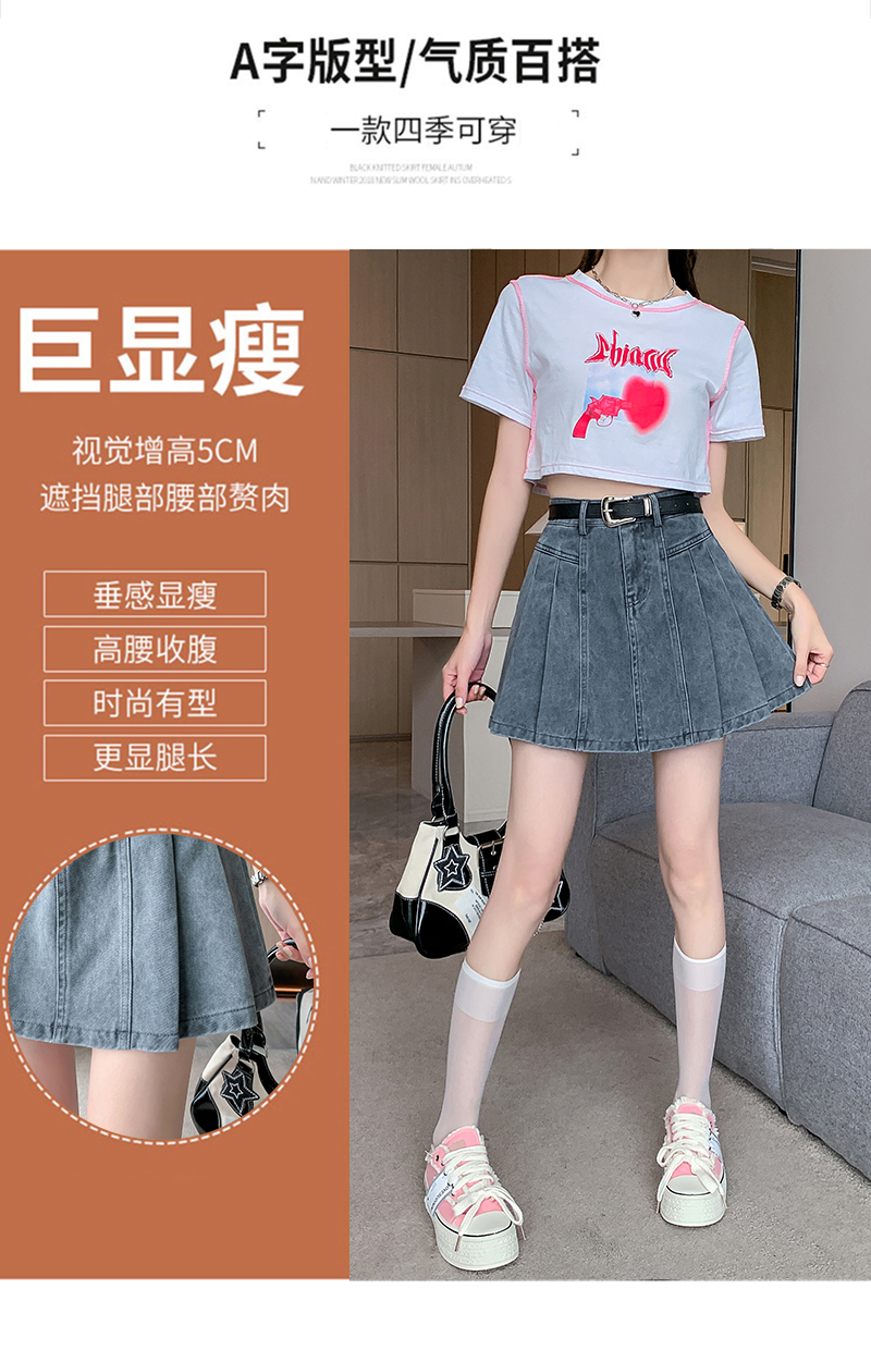 RM14375#小个子显瘦牛仔半身裙女夏潮a字裙短裙高腰a字半身牛仔裙春秋