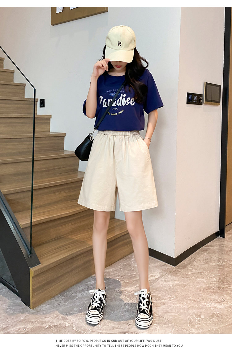 RM14434#短裤女2023夏季薄款高腰宽松显瘦五分裤纯色透气休闲阔腿中裤