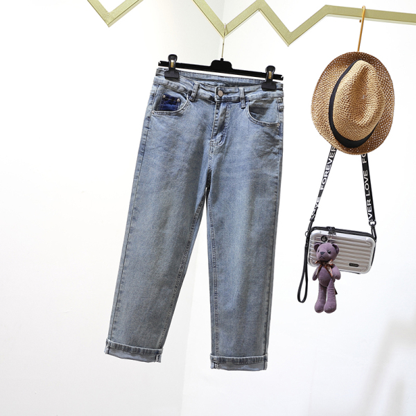 RM14700#大码2023夏季七分八分烟管直筒牛仔裤显瘦梨形身材女裤子