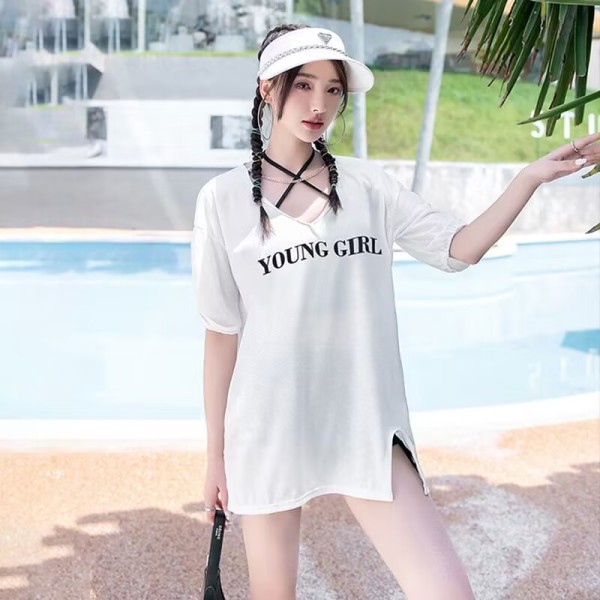RM14721#学生运动游泳衣女分体比基尼三件套保守遮肚显瘦超仙ins风泡温泉