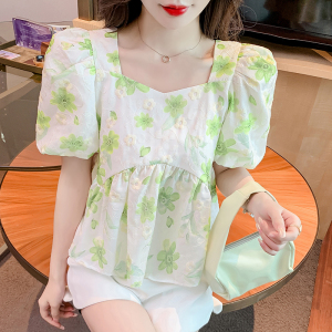 RM14932#碎花甜美方领泡泡袖衬衫女夏新款设计感小众法式超仙短袖上衣
