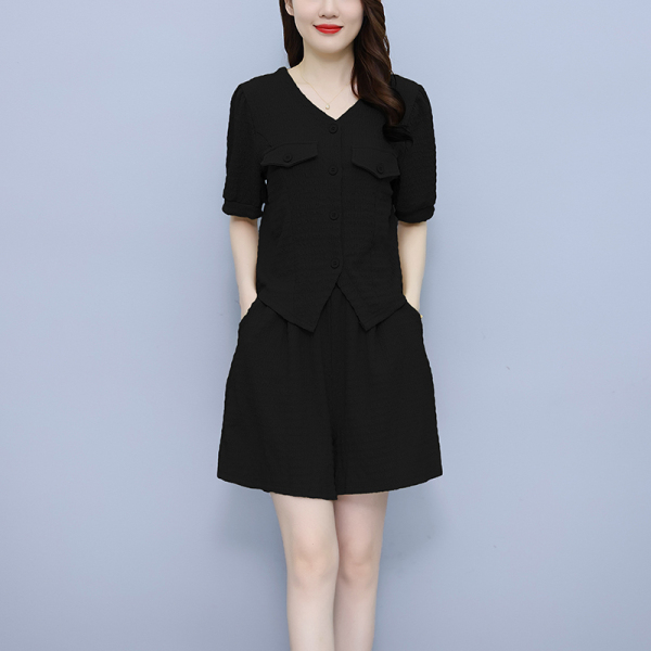 RM14934#大码女装2023夏季新品大码胖MM显瘦V领上衣+宽松短裤两件套