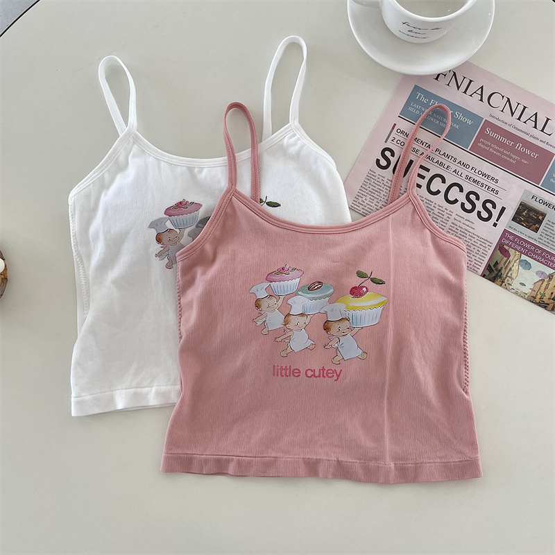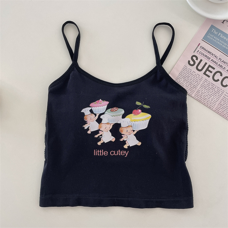 RM14987#纯欲风卡通印花带胸垫吊带背心女夏外穿修身短款美背上衣
