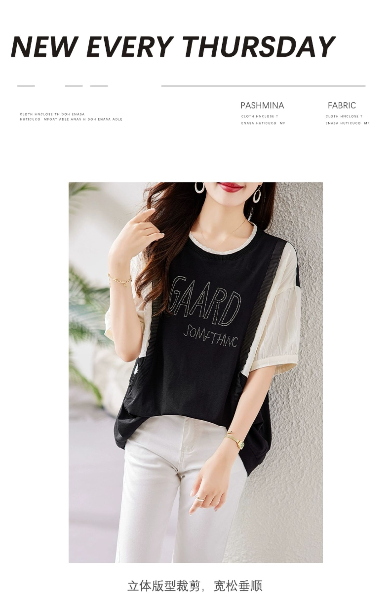 RM15039#拼接假两件短袖衬衫女夏装2023新款欧货宽松洋气小衫别致显瘦上衣