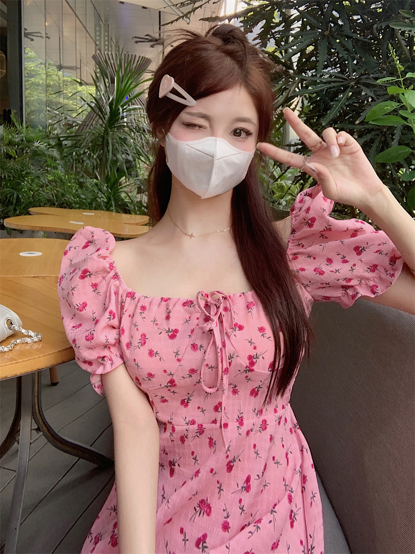 小碎花u领连衣裙,面料手感很柔软