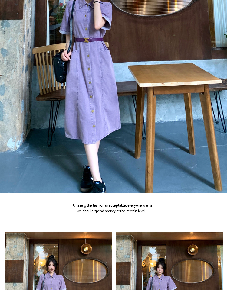 RM15394#大码微胖MM夏季减龄紫色牛仔短袖POLO翻领连衣裙女宽松裙子