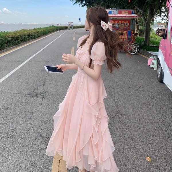RM15482#原版做法法式长裙雪纺夏新款设计感小众别致绝美气质温柔风连衣裙