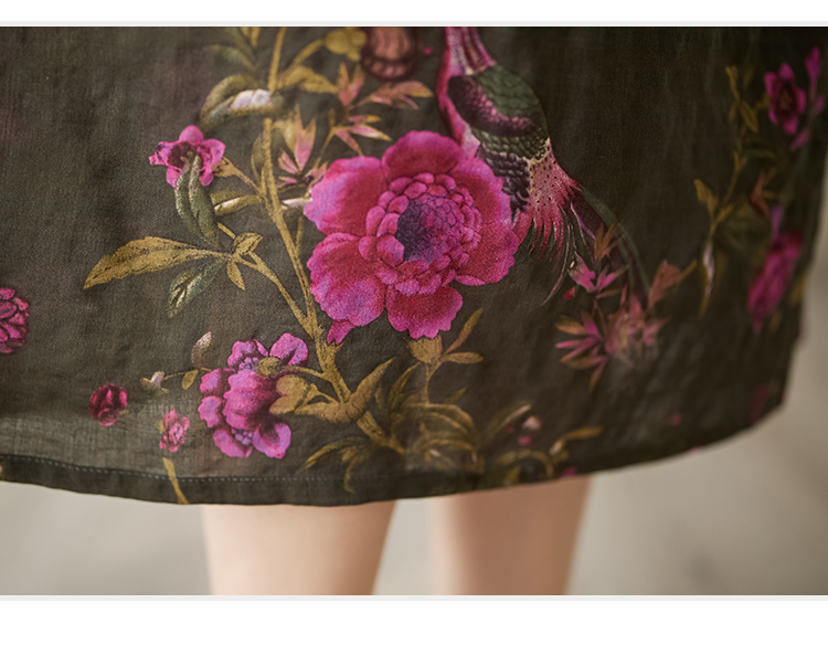 RM15514#新款夏女复古棉麻短袖连衣裙洋气宽松休闲高端亚麻中长裙