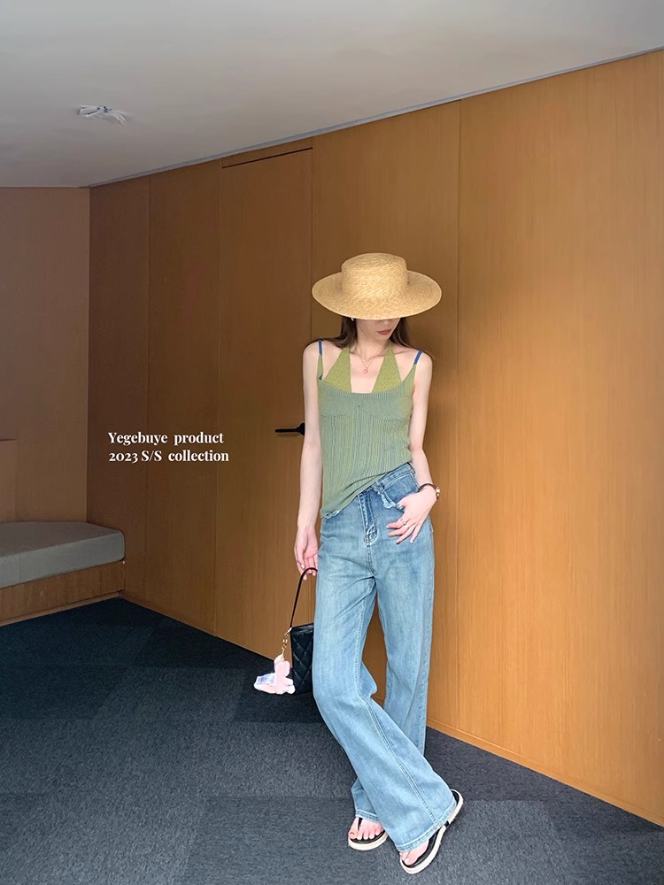 RM15671#野哥不野 法式复古辣妹假两件针织挂脖吊带背心女设计感修身上衣