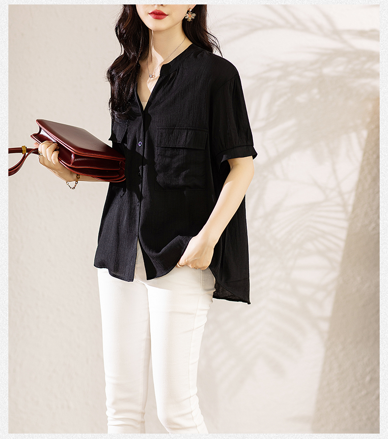 RM16548#夏季新款宽松显瘦衬衫纯色百搭大口袋上衣女