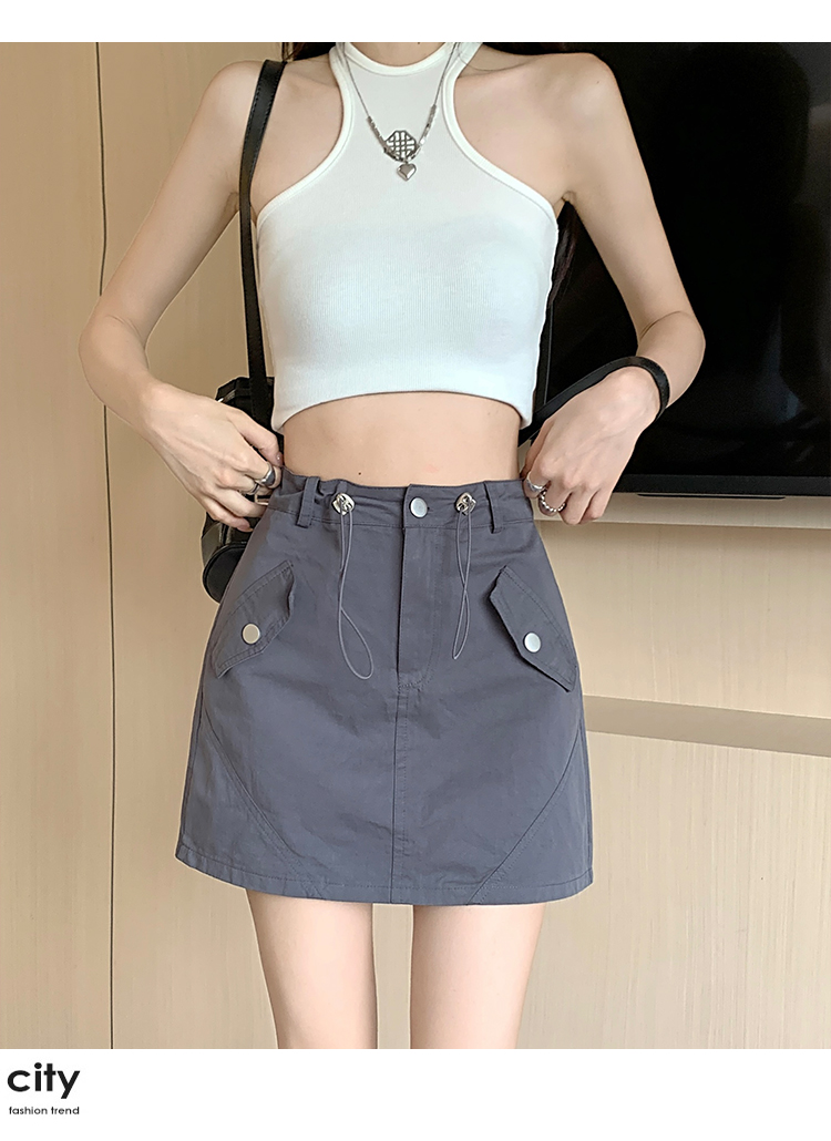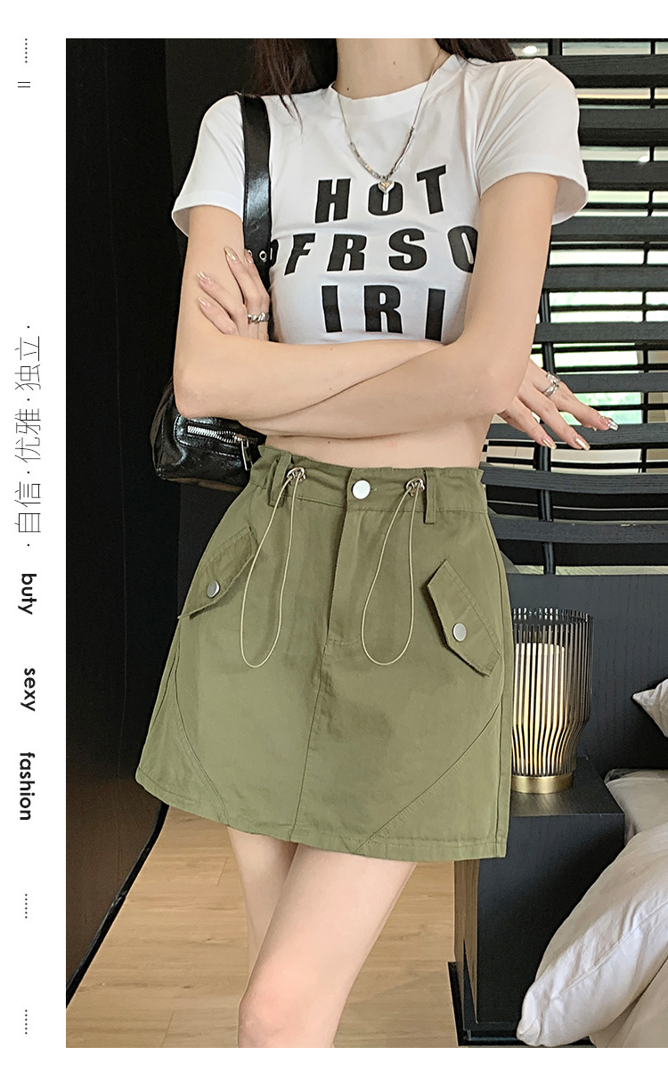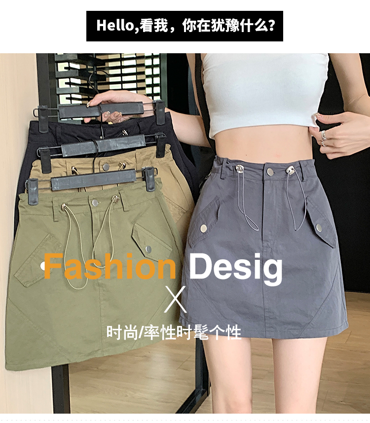 RM16655#韩版抽绳收腰显瘦半身裙女休闲减龄百搭防走光工装短裙