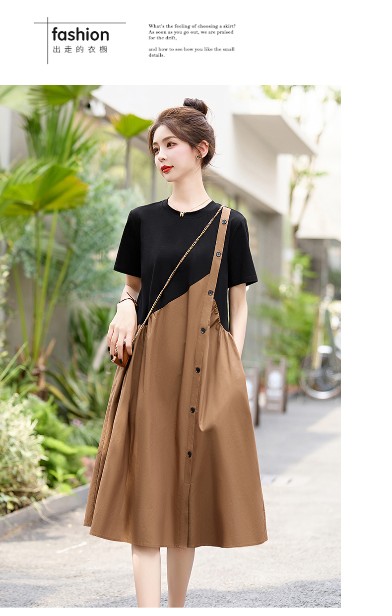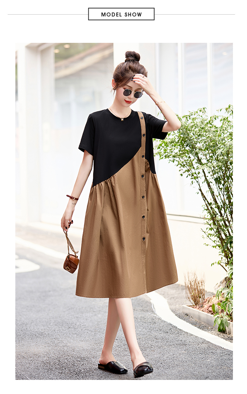 RM16694#休闲棉麻连衣裙女2023夏季设计感洋气宽松大码新款设计感T恤裙子