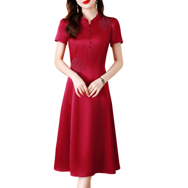 RM16838#喜婆婆真丝连衣裙女夏季2023新款红色中老年妈妈婚宴装桑蚕丝裙子