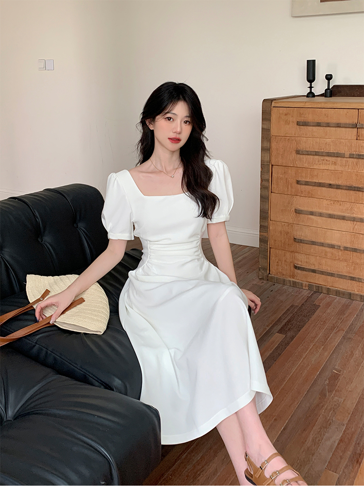 RM20034#夏季新款法式设计感刺绣泡泡袖连衣裙时尚修身显瘦A字裙