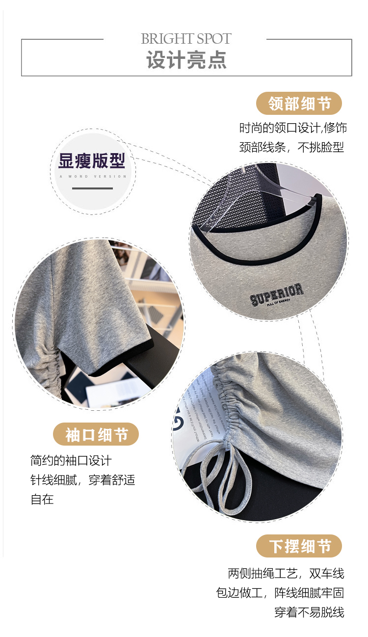 RM16998#夏季设计感小心机撞色圆领印花T恤短款显瘦抽绳百搭短袖上衣