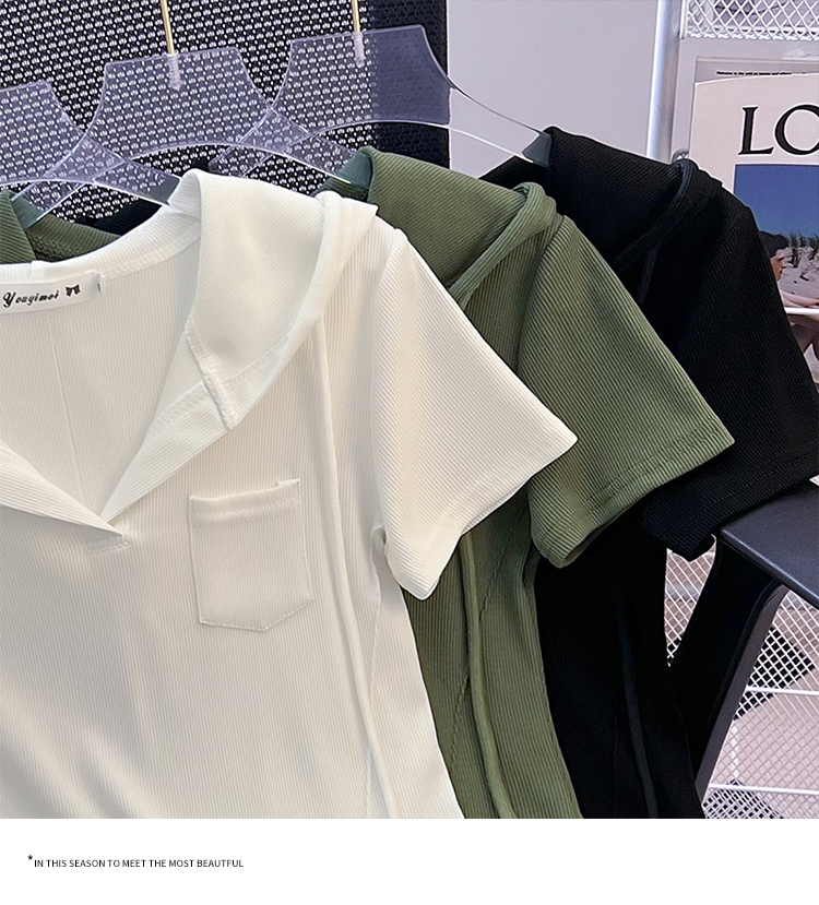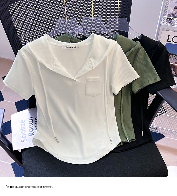 RM17003#夏季新款连帽V领设计感韩版修身显瘦百搭T恤女