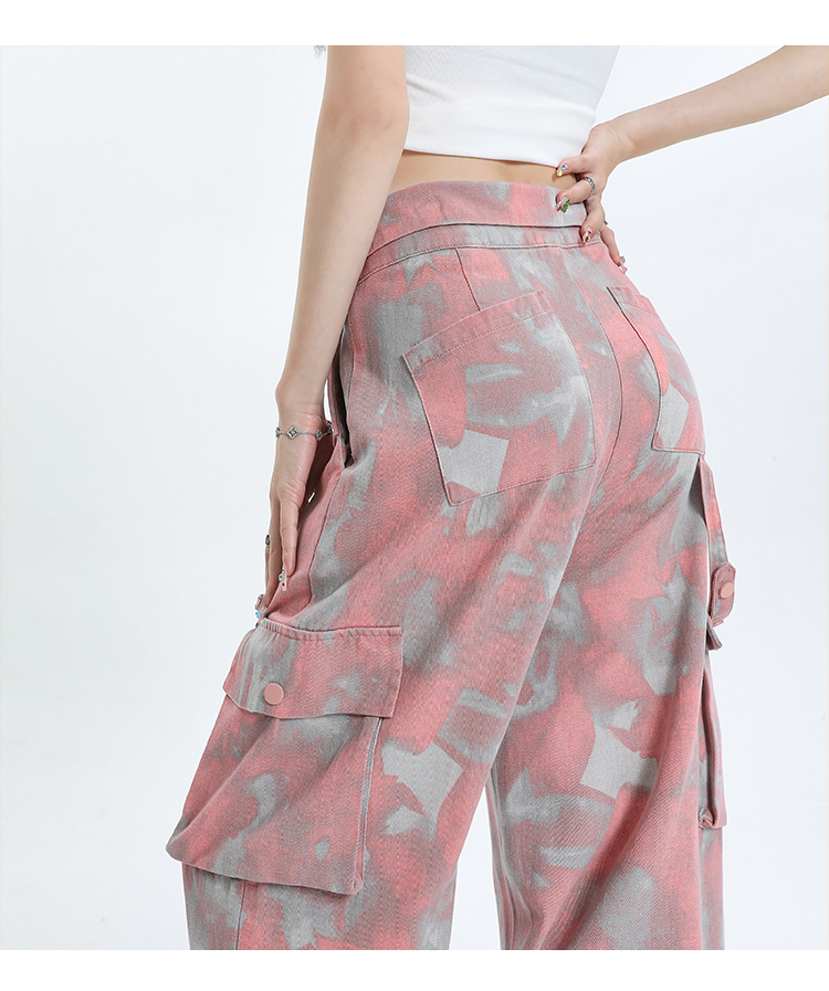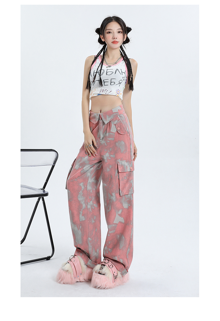 RM17020#美式多巴胺穿搭迷彩工装裤女辣妹设计小个子宽松拖地直筒裤子