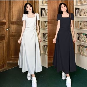 RM17077#茶歇法式连衣裙女夏季2023新款仙女方领温柔风泡泡袖收腰长裙子