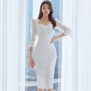 RM17089#夏新款韩版名媛气质修身遮肉显瘦喇叭袖时尚女人味中长包臀裙