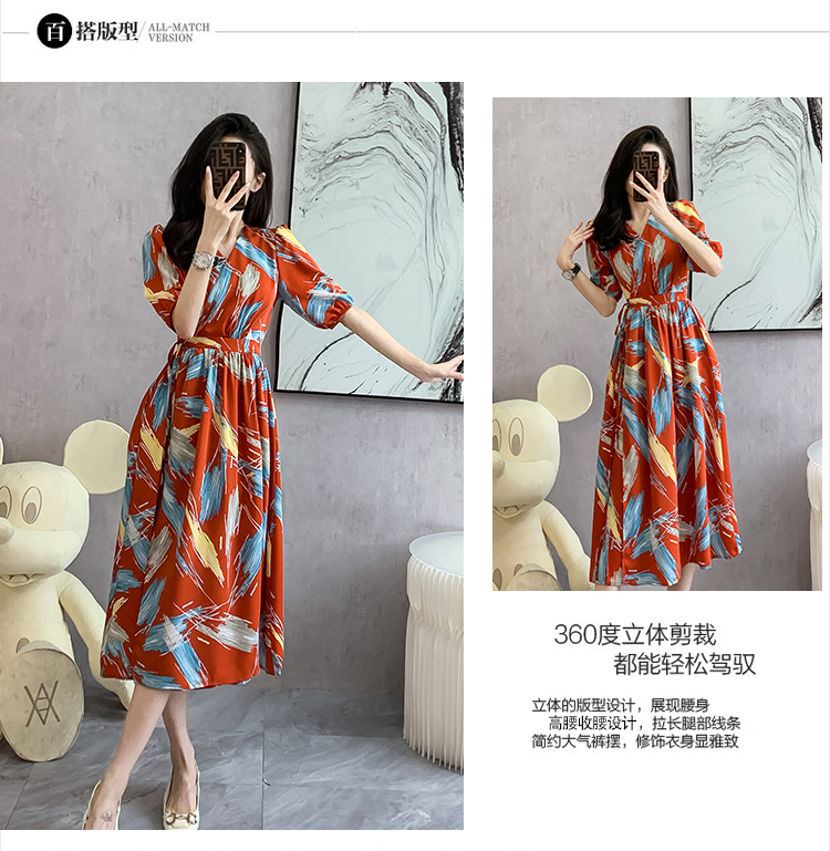 RM17347#夏温柔风高级感显瘦气质裹身一片式法式花朵连衣裙有口袋