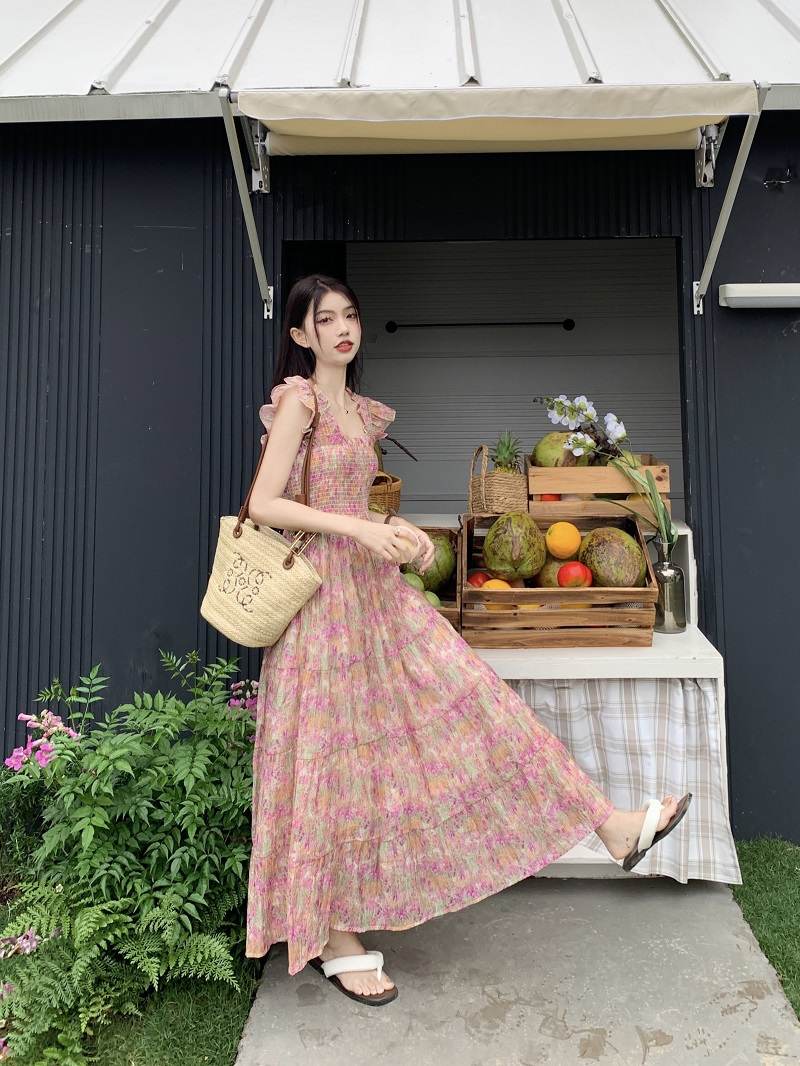 RM17355#飞飞袖碎花连衣裙设计感夏季新款仙女裙子洋气别致修身显瘦长裙潮
