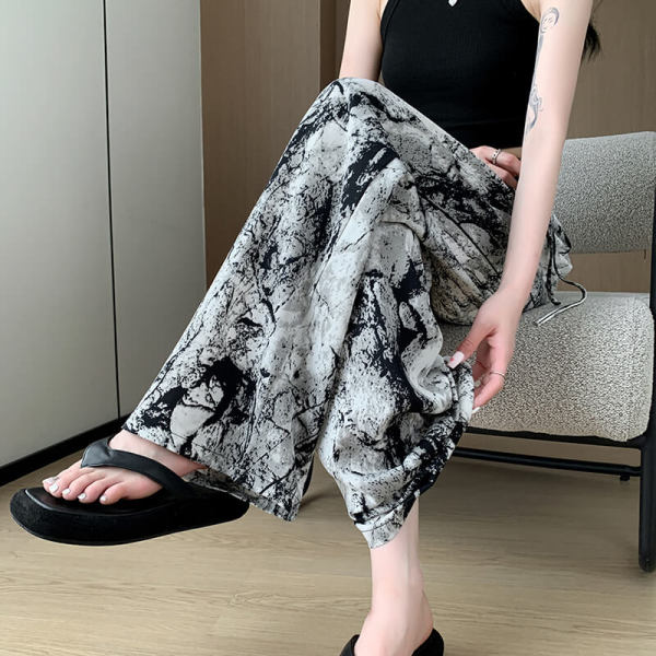 RM17196#夏季薄款冰丝扎染阔腿裤女高腰垂感直筒宽松显瘦防晒休闲裤子