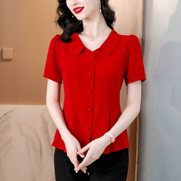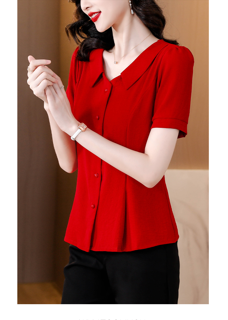 RM17762#娃娃领洋气收腰短袖衬衫女士夏季新款开衫妈妈减龄上衣薄时尚