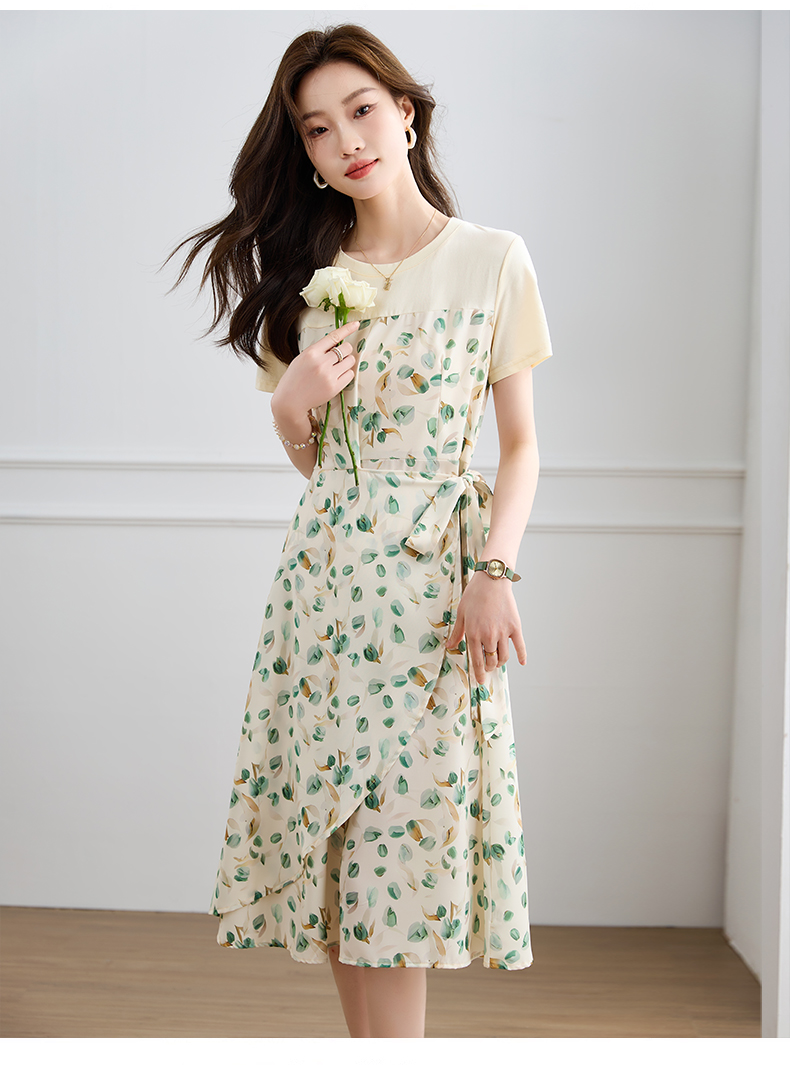 RM17993#假两件碎花连衣裙女2023夏季新款短袖圆领不规则荷叶边裙子小清新