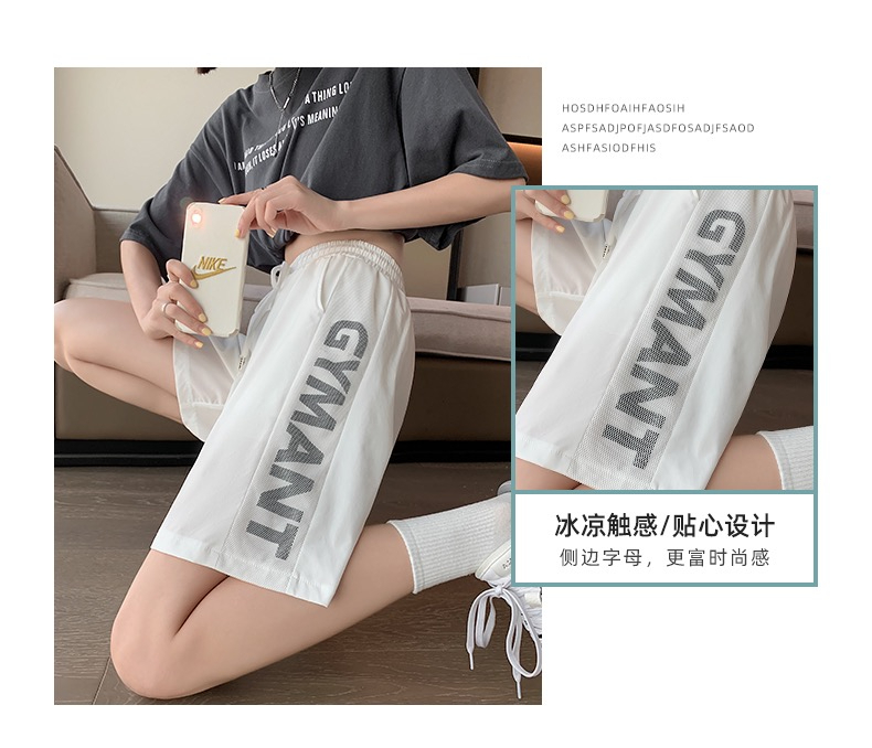 RM18372#冰丝速干运动短裤男女夏季薄款高腰显瘦裤子休闲阔腿五分裤中裤子